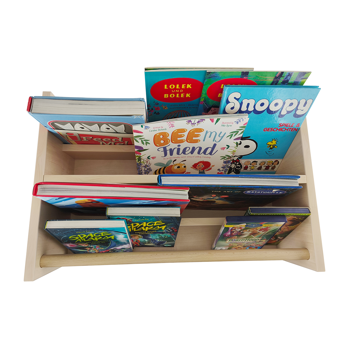 - oben 4 Ablagen für Bücher
