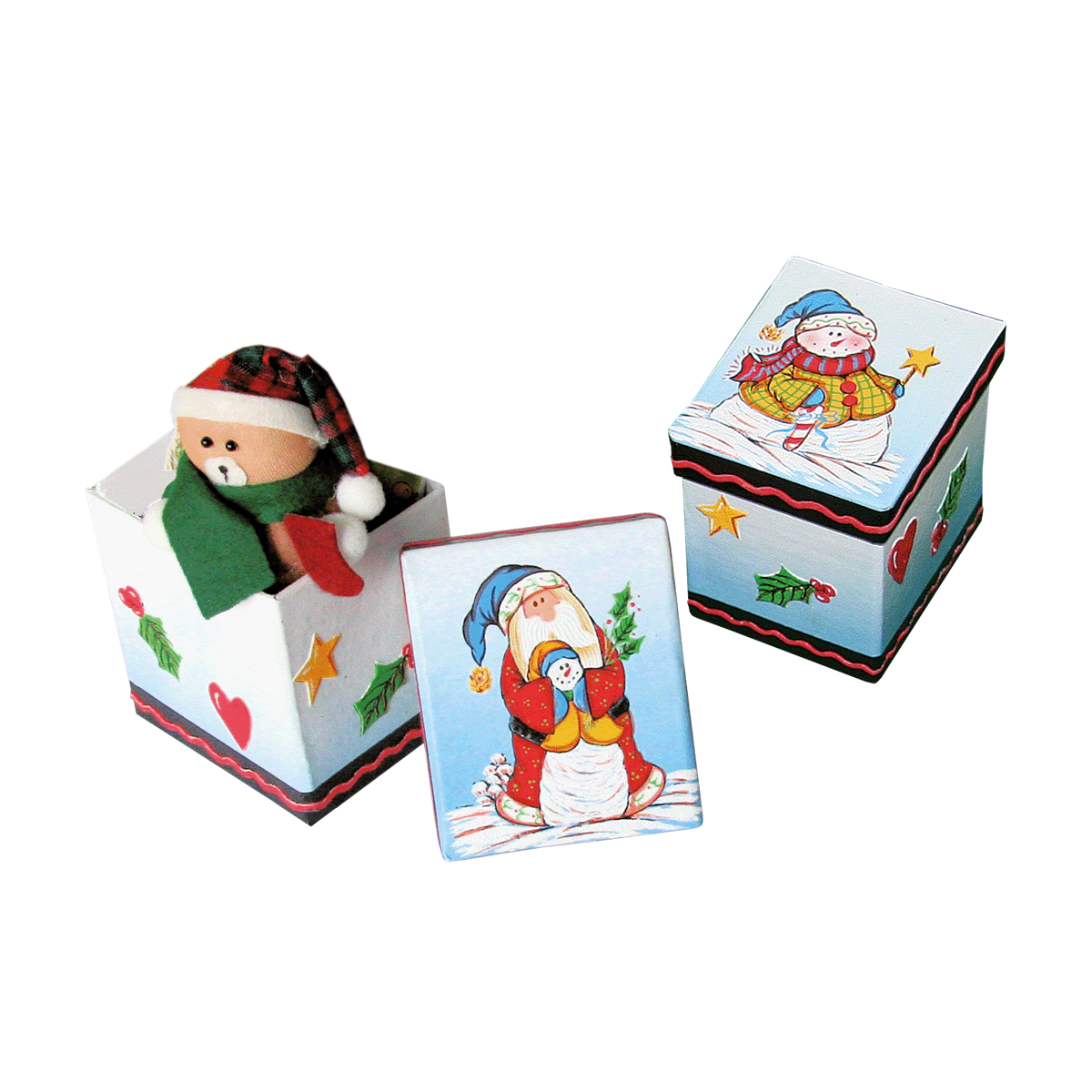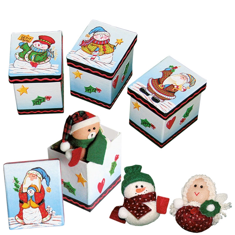 Kleine Weihnachtskiste mit Überraschung im Innenteil: in jeder Kiste befindet sich eine Plüschfigur zum Spielen. Es ist ein niedliches kleines Geschenk, ideal auch für den Adventskalender oder zum Wichteln.
